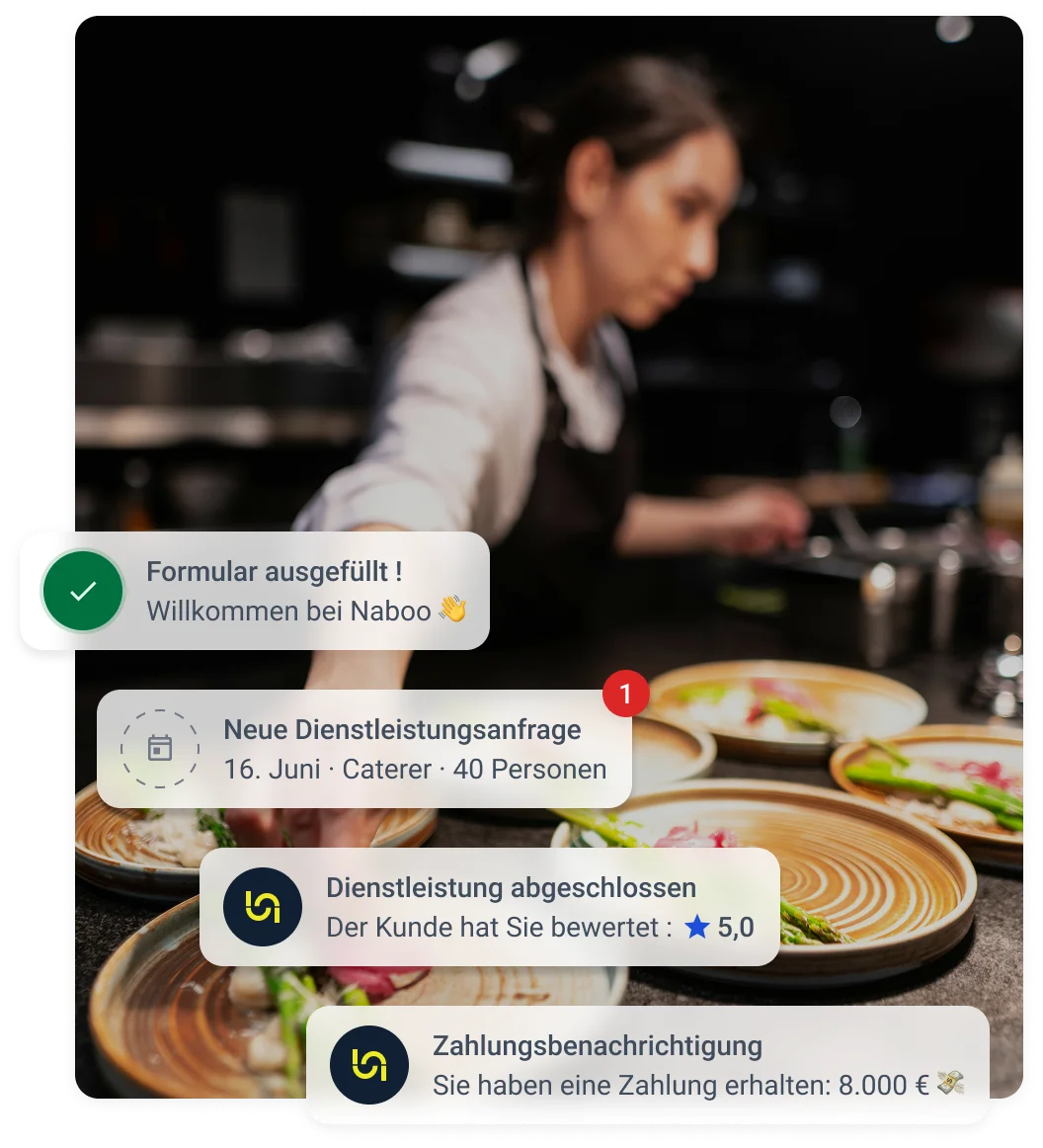 Sie sind im Eventbereich tätig und möchten Ihr Geschäft ausbauen? Werden Sie Teil von Naboo und gewinnen Sie Sichtbarkeit bei über 5.000 Kundenunternehmen in ganz Europa.