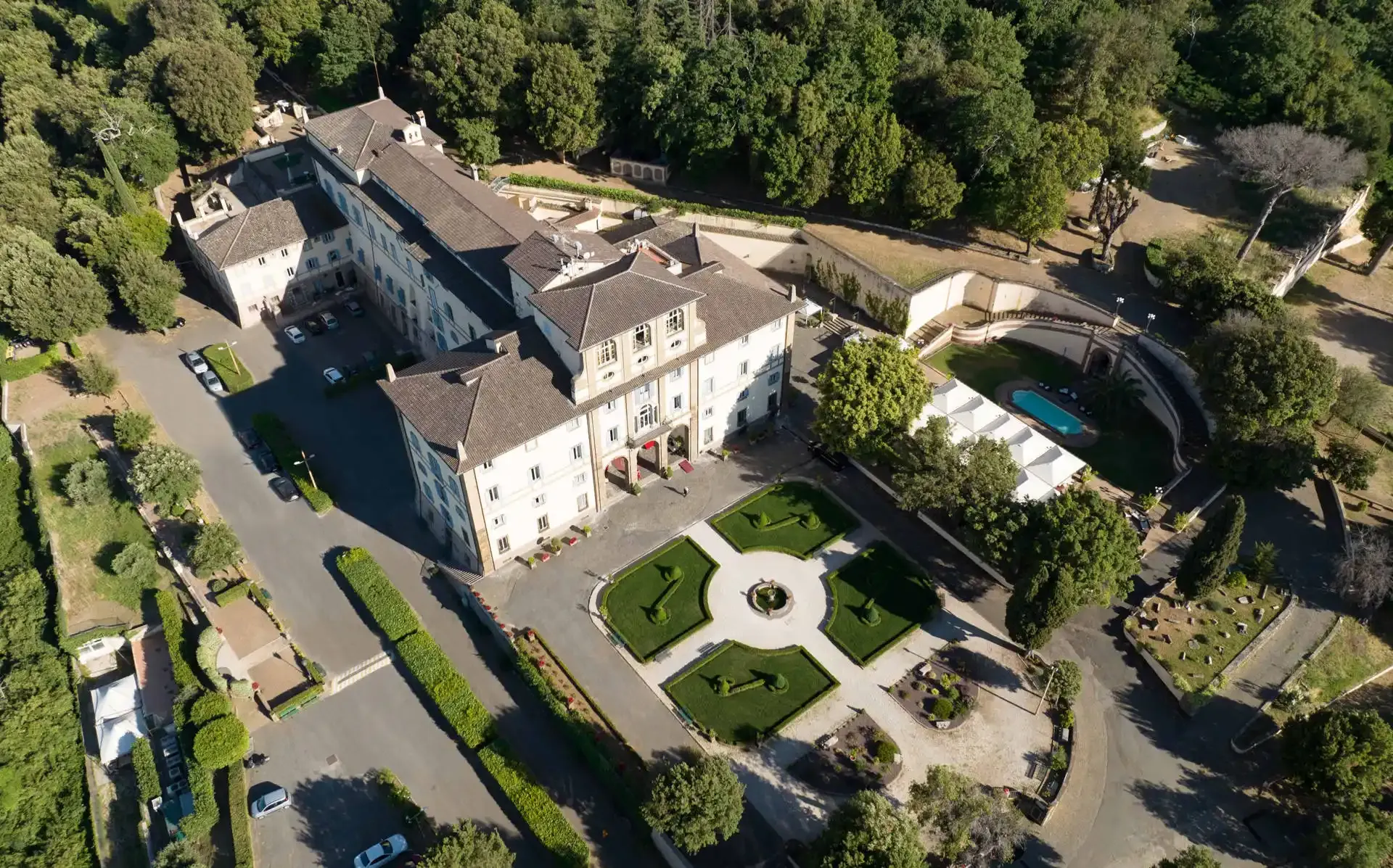 La villa offre oltre 80 camere, 50 delle quali possono essere configurate con due letti singoli, il che la rende ideale per ospitare gruppi aziendali più grandi. Oltre alle strutture per riunioni, Villa Tuscolana vanta splendidi giardini e terrazze con vista mozzafiato su Roma e sulla Campagna Romana, perfette per sessioni di breakout, networking o relax tra una sessione e l'altra.